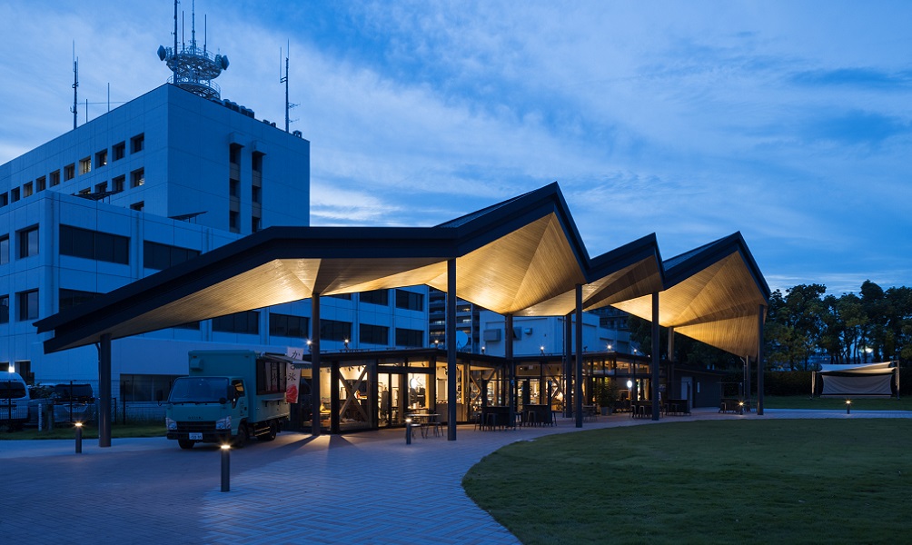 名称 : ARKS(アルクス) 所在地 : 佐賀県佐賀市 構造規模 : 木造 地上1階 延床面積 : 390㎡(飲食店152㎡ 物販64㎡ 大屋根173㎡) 竣工 : 2022年04月 その他 : プロポーザルによる選定(光井純アンドアソシエーツ・三原設計共同企業体) 撮影 : Yousuke Harigane/Seinosuke Kaneda(空撮)